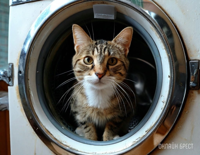 Кот чудом выжил после полного цикла стирки в машинке